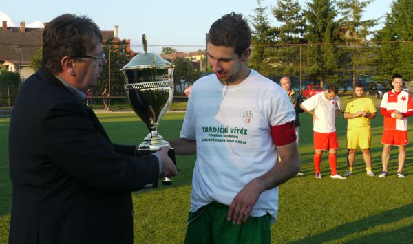 Pohár vítězi předává hejtman Královéhradeckého kraje Lubomír Franc. Foto: Václav Mlejnek. Fotogalerie: předávání poháru.