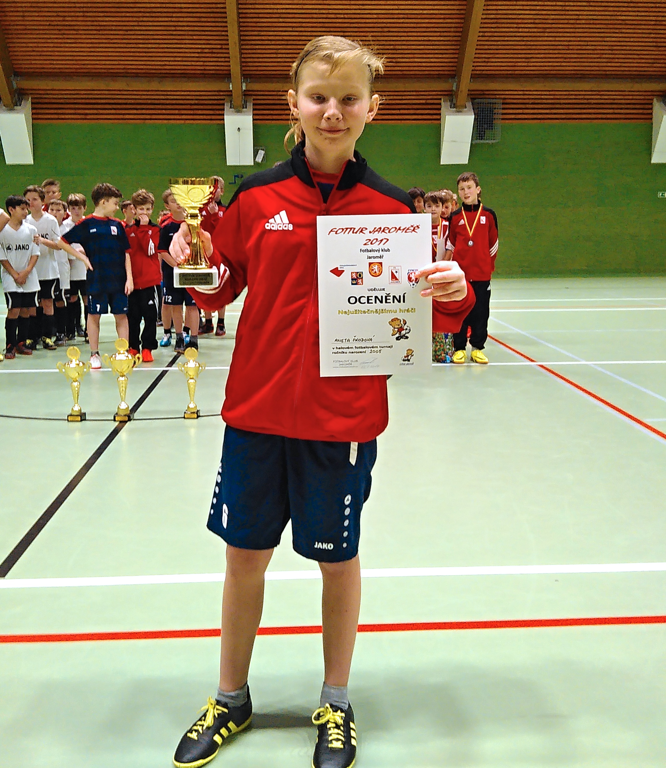 Na dnešním turnaji podali všichni hráči velmi dobrý výkon, hlavně v posledním utkání předvedli takové nasazení, jaké by mělo být při každém zápase samozřejmostí. Velmi dobrý výkon předvedl a neztratil se i Tomáš Vojtíšek z 2006. Výborný výkon Anetky byl dnes i oceněn individuální cenou pro nejlepšího hráče - gratulujeme.
