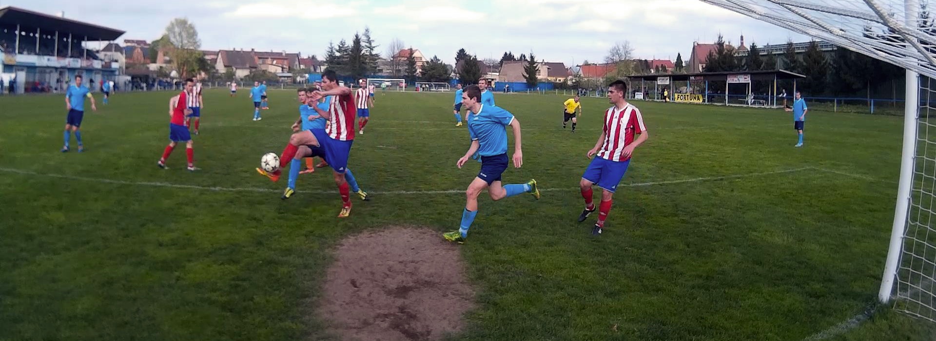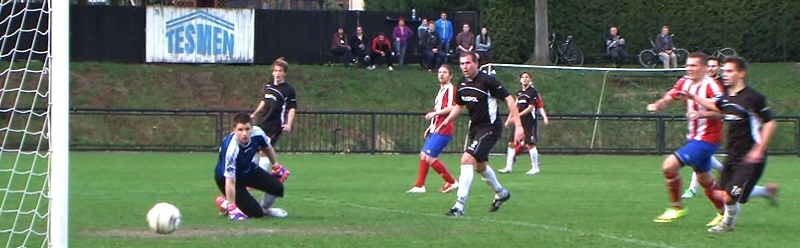 První gól Jaroměře. Pavel Ruml střílí do prázdné brány. Foto z videa.